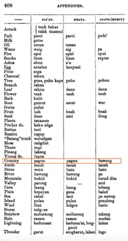Translation of the word "Bawang" as recorded by Spencer St. John in 1862.