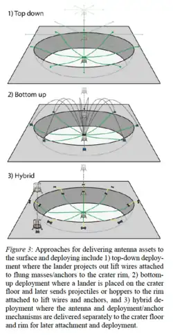 12. ^ "A Concept for the Deployment of a Large Lunar Crater Radio Telescope Using Teams of Tethered Robots". JPL Open Repository. 8 Feb 2022.Public Domain This article incorporates text from this source, which is in the public domain.