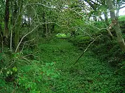 The Monkridden No.1 coal seam was abandoned before 1879 and No.2, Wee coal and limestone was still working in 1877.[11] Goldcraig's limestone quarry closed in 1891 and the Wee coal working was abandoned in 1927.[12] Lylestone had Wee coal and fire-clay workings. The upper quarries were abandoned in 1918.[13]