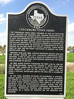 4. ^ a b c "Lynchburg Ferry". Harris County Precinct Two. Archived from the original on October 6, 2014. Retrieved April 26, 2008.