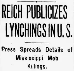 61. ^ a b "Reich Publicizes Lynchings in U.S.". Washington, D.C.: Evening Star. April 15, 1937.
