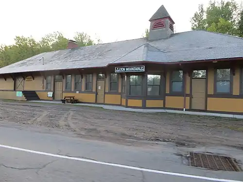 Lyon Mountain station is a historic train station located at Lyon Mountain, Clinton County, New York. The station was built by the Delaware and Hudson Railway in 1903, and is a long one-story, rectangular, wood-frame building with Late Victorian style design elements. It has a hipped roof with wide overhanging eaves and topped by a cupola with a pyramidal roof. The station remained in use until 1949–1950, and later used as a post office and tavern.[2]: 5 It is now a museum.