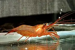 Lysmata boggessi is a species of saltwater shrimp best known in the marine aquarium trade as the most reliable natural predator of Aiptasia anemones. It is commonly referred to by hobbyists as the "true peppermint shrimp", due to its consistent effectiveness and correct identification compared to similar-looking species. Native to shallow waters of the western Atlantic Ocean, it was originally classified as Lysmata wurdemanni but is now recognised as a separate species based on morphological and genetic distinctions.[1]