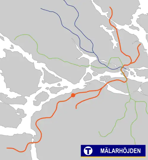 Mälarhöjden metro station is a station on the red line of the Stockholm metro, located in the district of Mälarhöjden. The station was opened on 16 May 1965 as part of the extension from Örnsberg to Sätra.[2] It is 7.5 km (4.7 mi) from the Slussen metro station.