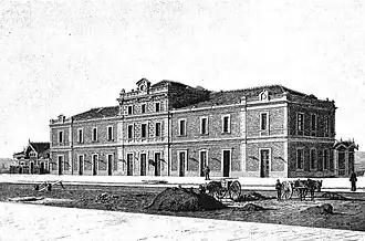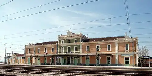 The station building is an eclectic architectural work from 1891 that is protected as a Cultural Heritage of Local Interest. It is a large isolated rectangular building, consisting of three attached bodies. The central body has a four-sloped tile roof and is distributed over the ground floor, upper floor, and attic, while the two lateral bodies have three-sloped tile roofs and consist of a ground floor and upper floor. In general, all openings are rectangular with molded and whitewashed frames. Those of the lateral bodies have an upper sill and sills supported by small brackets. Those of the central body, on the other hand, have lintels decorated with triangular or rhomboidal shapes. In general, large molded cornices mark the division between the different floors, including the cornices, which also have small decorated triangular panels, resembling pinnacles. It is worth noting the iron porch attached to the facade facing the station platforms and a smaller annex building, also consisting of three attached bodies, with flat and two-sloped tile roofs and organized on a single floor. Currently, the entire complex has been renovated.[6]