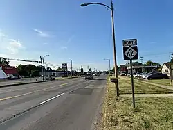 M-66 is a four-lane highway that connects with State Road 9 (SR 9) at the Indiana state line in southern St. Joseph County. The highway runs north to Sturgis through farm land where it turns east through town running concurrently with US 12 on Chicago Road.[6] As it leaves Sturgis to the north it crosses a branch of the Michigan Southern Railroad,[7] and it becomes a two-lane surface highway along Nottawa Street. The highway runs near several small lakes and crosses the Prairie River before meeting M-86. The two highways run north–south concurrently for about 1.9 miles (3.1 km) along the NottawaColon township line. Farther north, M-66 crosses the St. Joseph River and meets M-60. M-60/M-66 run together to the east, crossing Nottawa Creek, then turning northeasterly in Leonidas and crossing into the northwest corner of Branch County. M-60 and M-66 separate west of Union City, and M-66 turns north into Calhoun County.[6][8]