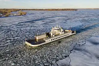 The motor vessel Frontenac II is a ferry on Lake Ontario, that runs from Millhaven, Ontario to Amherst Island.[2][3] The trip takes fifteen minutes.[4] The vessel loads at both the bow and stern.