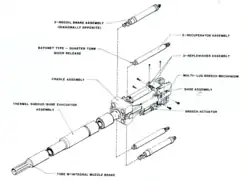The M35 was designed and developed by Benét Laboratories, Watervliet Arsenal in 1983 for the Mobile Protected Gun Program,[2] a joint U.S. Marine Corps and U.S. Army program.[3] The program was canceled the following year,[4] however the Large Caliber Weapon System Laboratory (LCWSL) mounted the EX35 in an XM4 Armored Gun System (AGS) turret basket during FY1984. LCWSL fired 100 rounds from the gun.[5]