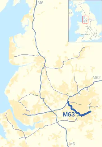 The M63 motorway was a major road in the United Kingdom. It was completely renumbered, in 1998, to become a substantial part of the M60 motorway which orbits part of Greater Manchester.