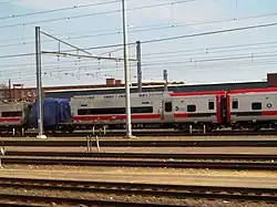 The M8 is an electric multiple unit railroad car built by Kawasaki for use on the Metro-North Railroad New Haven Line and the CT Rail Shore Line East. The fleet of 471 cars first entered service in 2011, replacing the M2, M4 and M6 cars, which entered service in 1973, 1987 and 1994, respectively.[9] An additional 60-car order is currently finishing delivery in response to increased ridership and usage on Shore Line East.[10][11]