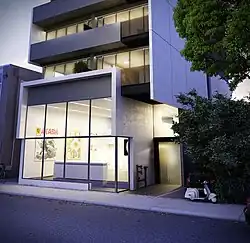 The architecture and fit-out of MARS is by JAM Architects in collaboration with gallerist and MARS founder Andy Dinan. The three-level space incorporates amenities for showing new media such as sound sculpture, video and light art. The gallery has four distinct exhibition spaces, including a custom black-box gallery committed to the exhibition of contemporary video art, a light-box room for the display of light and sound works, a drawing room to exhibit works on paper as well as a rooftop sculpture garden accessible by an elevator with a light artwork installed into the elevator shaft by artist Jason Sims.[3]