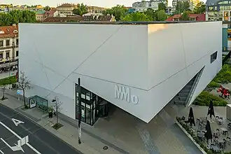 The museum was opened to the public on 18 October 2018 in the building designed by Studio Libeskind and Do Architects studio.[1][2] Total building floor area: 3100 sq.m., height: 17 m.[3] Architect Daniel Libeskind commented that although it is his smallest project, it is also one of his favorites, and he also noted that he used circular form in it for the first time (spiral staircase in the interior).[4] Italian news agency ANSA included Mo Museum into Top 10 21st century museums to visit.[5] The museum hosts numerous exhibitions, film screenings, educational workshops, concerts and other cultural events, which are intended for various age groups.[6]