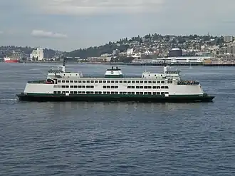 MV Kitsap is an Issaquah-class ferry operated by Washington State Ferries. The Kitsap was built in 1980 as an Issaquah class and upgraded in 1992 moving it to the Issaquah 130 class due to adding an upper car deck. The vessel also received interior upgrades. The vessel used to have a rainbow color of blue, but has since been renovated with interior colors light, and dark blue, and dark green.