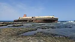 In June 2014 she ran aground on rocks in Moia Moia Bay, Sao Domingos, Cape Verde following a breakdown during a storm. A short causeway was built out to the ship, allowing the cargo to be unloaded.[4] The remains of the wreck remain extant on the shore at 15°1′26″N 23°26′21.5″W / 15.02389°N 23.439306°W.