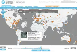 Global news and local stories by the site's community of contributors was geolocated on an interactive world map, depending on the place they have happened. With an "Ask for News" option users could request news and information about particular events from any place of the world .[1] The news content was ordered at a timeline, according to its date of action. One could set the time indicator to any year and date between the year 1895 and 2100 for a narrower search criteria.[2] Users could comment and also rank on a scale from 1 to 5 on each news submission.[3]