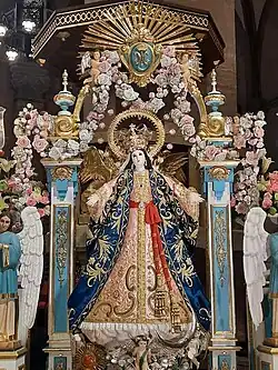 The original wooden image of Nuestra Señora de la Asuncion is a de tallado image where the Virgin is standing on a cloud with cherubs, has loose yet wavy hair, her right hand is outstretched and her left was on her chest looking upwards. The original yet fragile image is currently enshrined in a special chapel dedicated to her for veneration.