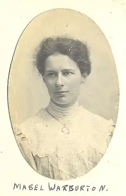 1. ^ a b c d e Okkenhaug, Inger Marie. "Warburton, Mabel Clarisse (1879–1961)". Oxford Dictionary of National Biography (online ed.). Oxford University Press. doi:10.1093/ref:odnb/70088. (Subscription, Wikipedia Library access or UK public library membership required.)