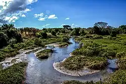 During the 1860s, the local Aboriginal population, as Henry Ling Roth puts it, "did what they could to defend their country and their lives."[24] The local detachment of the Native Police under Robert Arthur Johnstone started patrolling the area in 1867, and encountered several Aboriginal camps on the north side of the Pioneer River, one of which contained more than 200 people. A newspaper report of the time says that Johnstone dealt with these people "in the usual and only effectual mode for restraining their savage propensities."[26] The usual mode of the Native Police was terror, violence and massacre.[27] In 1868 a large group of Aboriginal people killed 7 cattle at Greenmount. Johnstone and his troopers were sent out after them but it is unclear if he succeeded in "administering a lesson to the blackskins."[28] Colonist, George Bridgman, provided some sanctuary to the remnants of the tribes and in 1871 an Aboriginal Reserve was gazetted near Rosella.[29] This reserve shut in 1885.[30]