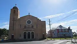 The Holy Trinity Church built in 1926 and designed by architect Lange Leopold Powell, utilising Romanesque, Spanish Mission and Mediterranean architectural styles