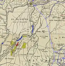 During the 1948 war, the evacuation occurred before the Zionist assault on Safad on 10 to 11 May.[2] According to Morris, based on Haganah-sources, the villagers feared reprisals or feared being caught in a cross-fire after local Jewish communities had been attacked. Therefore, the villagers of Madahil (together with those of Khiyam al-Walid, Al-Hamra', Ghuraba, and (partially) Al-Muftakhira) fled.[4] However the American historian Rosemarie Esber gives as depopulation cause "Attack or atrocity in neighboring village or community" and "Fear of impending attack, or fall of neighboring town or village."[5] The Israeli settlement of Kefar Szold, founded in 1942, is located 1.5 km southeast of the village site, but not on village land.[2]