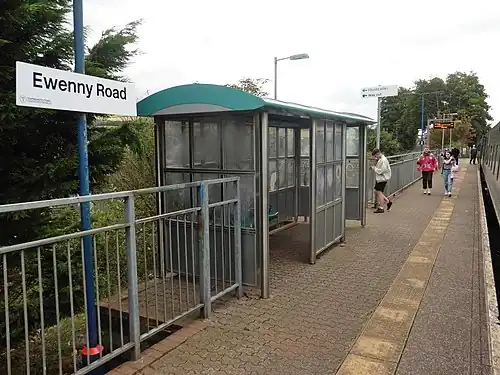 Maesteg (Ewenny Road) railway station is one of two railway stations that serve the town of Maesteg in Wales. It is located adjacent to the Ewenny Road Industrial Estate to the south of Maesteg on the Maesteg Line from Cardiff via Bridgend. The other station, which is the terminus of the Maesteg Line, is named Maesteg.