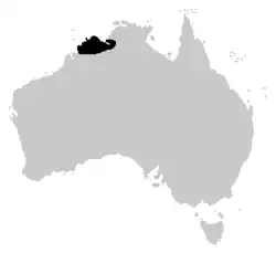 Magnificent tree frogs are native to the Kimberley region of Western Australia. They are nocturnal and enter caves and rock crevices during the day.[3] Much like the other large tree frogs in Australia, White's tree frog and the giant tree frog, they inhabit areas near humans, and can be found around buildings and in toilets, showers, and water tanks. They are nocturnal, and will hunt and breed at night.