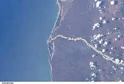 ![]() Lower section and delta of the Maharivo River, taken from the International Space Station | |