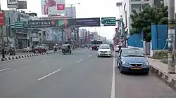 Mahatma Gandhi Road (MG Road), popularly known as Bandar Road, is a boulevard and major road in the Indian city of Vijayawada.The road starts at Benz Circle, busiest traffic circle in the city and continues to Avatar Park, where it connects to Eluru Road which is also a major road. It runs almost parallel to the Bandar Canal. The National Highway 9 (NH 9) runs parallel to this road on the other side of the Bandar Canal, merging into Bandar Road at Benz Circle. The name "Bandar" was originally the name of Machilipatnam Road, which the current Bandar Road intersects.