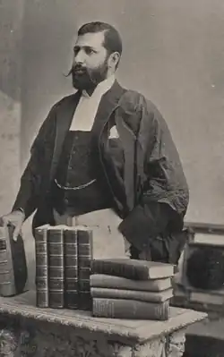 After completing his early education, he joined Wren and Gurney. In 1882, he joined Christ's College, Cambridge and Lincoln's Inn. He was called to the bar in 1886.[2][5]
