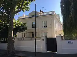 A blue plaque in the street commemorates the former residence of the poet John Masefield.[3] The actor Arthur Lowe, known for his role as Captain Mainwaring in the BBC television series Dad's Army, lived in Maida Avenue from 1969 to 1982.[4]