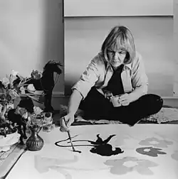 In 1948, she went to Oslo, visiting the Van Gogh exhibition and seeing the Edvard Munch paintings there. She was inspired by a display of classical era pots at the Oslo Museum of Craft and Design to create her Amfora ("Amphora") print.[6] The marriage with Leander did not last long, and by 1949 she was travelling Europe with the painter Jaakko ("Jaska") Somersalo, who became her second husband. He taught her woodcut printing and inspired her to paint. They divorced in 1955.[7]