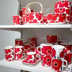 In 2011, Marimekko flew a hot-air balloon decorated with an enormous version of Unikko over Helsinki, reflecting the iconic status of the print, nearly half a century later.[43] Marimekko's marketing policy is to reissue "classics from its fifty-year back catalogue, notably a large group of patterns from the 1950s and 1960s by Maija Isola."[28]