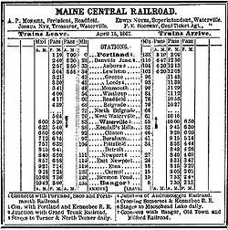 5. ^ "Excerpt from an article in the Portland (ME) Weekly Advertiser of January 28, 1870, relating to the Report of the Maine Railroad Commission for 1869". CPRR.org. Retrieved July 13, 2007.