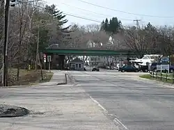 SR 115 serves as the primary entrance to North Windham village from the east. Within North Windham, it crosses a bridge over Ditch Brook marking the location of a terminal moraine formerly containing Little Sebago Lake until destroyed by a flood on June 4, 1814.[3] SR 115 becomes concurrent with US 202/SR 4 at the Gray town line and parallels the west bank of the Pleasant River through West Gray until reaching Gray village after an interchange with Interstate 95 (I-95) / Maine Turnpike. SR 115 separates from US 202 as the easterly road of the five-way intersection at Gray village and proceeds southeasterly paralleling the west bank of the Royal River through Walnut Hill in North Yarmouth, where it is known as Gray Road. SR 115 is known as West Main Street as it enters the town of Yarmouth, crossing the Maine Central Railroad Back Road and Lower Road a short distance northeast of their separation at Royal Junction.[2][4]