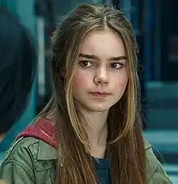 Maisie's role as Charlotte's daughter had always been planned by Trevorrow,[14] who said it was "very important to understand that Maisie wasn't made by some man who missed her". Trevorrow said that he and Dominion co-writer Emily Carmichael "really saw an opportunity to make this hopefully more emotionally satisfying than it could have been".[15] Sermon was happy with Maisie's characterization in Dominion: "Not only is she this clone, but she's also a teenager. She's trying to figure out her place in the world. She's trying to grow up [...]. She's not just a science experiment. She's a human".[16] To portray Charlotte, Trevorrow wanted to digitally age Sermon's face and then add it onto a body double. During the casting search for doubles, Trevorrow came across actress Elva Trill, who shared similar facial features with Sermon. After reciting lines, Trevorrow was impressed with Trill's performance and decided to cast her as Charlotte, scrapping the digital aging idea.[17][18]