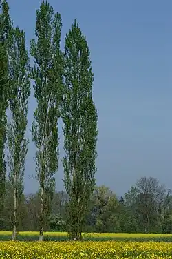 The area, which was one of the most populous sections of the township of Bergen,[8] was referred to as Maisland for 135 years,[9] when in the year 1803, Maisland became known as New Durham, which later on became part of North Bergen, New Jersey.[10] Maisland today constitutes the same area as New Durham did, which is bounded roughly by the beginning of Union Turnpike, Bergen Turnpike, and the Tonnelle Avenue Station of the Hudson Bergen Light Rail.[11] Within its vicinity during Maisland's frame of time was the Three Pigeons Tavern,[12] which stood at the southern fringe of Maisland near the intersection of Tonnelle Avenue and Hackensack Plank Road,[13] and the "Frenchman's Garden". This garden in Maisland, which later became Machpelah Cemetery,[14] was the early source for Lombardy poplar Populus nigra, which spread across the United States.[8][15]