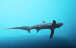 The number-one dive site of Malapascua is Monad Shoal, a natural cleaning station for fish located 7.8 kilometres (4.8 mi) from the island (11°18′30″N 124°11′30″E / 11.30833°N 124.19167°E – 30–35 minutes boat ride). The shoal is a rather unremarkable 1.5 kilometres (0.93 mi) long rock stump at the edge of a 200 metres (660 ft) drop and has a flattish top at a depth of 20 to 24 metres (66 to 79 ft). The site is best known as the only place in the world where thresher sharks can be seen regularly at and just before sunrise. They use the seamount as a cleaning station for bluestreak and moon cleaner wrasse to remove ectoparasites such as gnathiids from their skin and clean their gills and mouths. The shoal also attracts other pelagic fish such as devil rays and eagle rays. Manta rays and hammerheads are seasonal. Unfortunately most of the coral reefs of the shoal have been damaged by destructive fishing methods, as has happened all over the Philippines, and elsewhere.[3] In June 2016 a ship ran aground on the shoal, damaging three hectares (7.4 acres) of the protected area.[4][5]