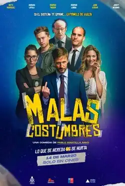 Malas costumbres (lit. 'Bad habits') is a 2024 Chilean comedy film written, co-produced and directed by Pablo Mantilla in his directorial debut.[1] Starring Rodrigo Pardow, Mariana Loyola, Rodrigo Lisboa and Mayte Rodríguez.[2] It premiered on March 14, 2024, in Chilean theaters.[3]
