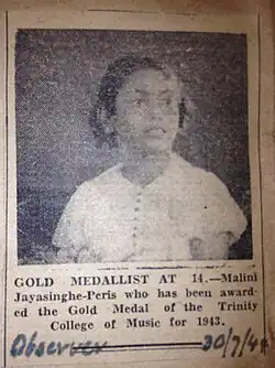 Malinee Peris (born 30 June 1929) is a Sri Lankan classical pianist.