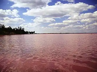 Located at the western edge of the Ob Plateau, near the Kulunda Plain, Malinovoye has an elongated shape, stretching roughly from north to south for approximately 6 kilometers (3.7 mi). The water is saline with a mineralization of 329 grams per liter (52.8 oz/imp gal) and with a pH of 8.4. The concentration of sodium in the water reaches 130 grams per liter (21 oz/imp gal). Halobacterium salinarum bacteria live in the lake, giving it a pink color in certain seasons.[3][4]