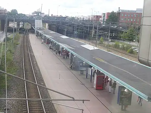 Malmi railway station has four tracks all of which have a platform. Platform tracks 1–2 are unused by the passenger trains that stop at the station and are no longer accessible.[4]