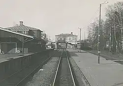 When local train traffic began in Finland in summer 1886, Malmi acted as the terminus for two local train services on the Finnish main railway line (the other two continuing further up to Järvenpää).[2] A new functionalist style station building designed by Thure Hellström was completed in 1934. The new building was exceptional from the station buildings of that time, since it was built above the train tracks.[3] This station building was closed in 1986, as the current bridge station was completed. When the fourth track between Helsinki and Tikkurila was introduced in 1996, the trains making a stop at the station started using the eastern platform (tracks 3–4) while the western platform (tracks 1–2) was closed, only to be used in exceptions. The ticket sales office was closed in 2004.[2]