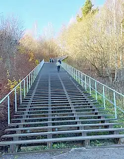 In 2017, and again in 2021 a professional piano moving company carried a 200-kilogram (440 lb) instrument up the steps to the top of the hill.[2] In between the two attempts the wooden steps had been renewed.