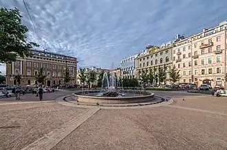 59°56′9″N 30°20′25″E / 59.93583°N 30.34028°E / 59.93583; 30.34028 Manezhnaya Square (Russian: Манежная площадь, romanized Manezhnaya ploschad) is a square in the Tsentralny District of Saint Petersburg.
