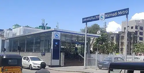 Mannadi is an underground metro station on the North-South Corridor of the Blue Line of Chennai Metro in Chennai, India. The station serves the neighbourhoods of Mannadi and George Town. This station was opened for public on 10 February 2019. However, some portions of the construction work remains incomplete on the date of inauguration.[1]