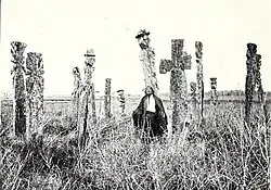 A funeral is called an awn.[73] Members of the reservation often feel obliged to attend the funeral, with non-attendance casting suspicion that they may have had a hand in the individual's death.[73] The funeral ceremony is designed to rid the living both of the deceased person's spirit and other malevolent spirits that may be lurking around at that time;[74] if the spirit lingers among the living after death it is at risk of being captured by a witch and used for malevolent ends.[75] During the ceremony, the ancestors are invoked and called on to protect the spirit of the recently deceased individual.[76]