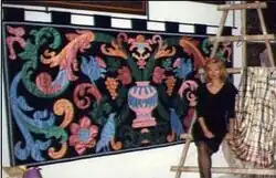 María Teresa Muñoz Guillén, (born in Sariñena, Huesca, Spain)[2][3] is a world recognized textile artist whose works are exhibited in Europe, the Americas, Asia and the Middle East.[4][5] [6] [7] She resides and works in New York, Naples (FL) and Zaragoza and is best known for the creation and restoration of textile art in classic and contemporary styles. Ms. Muñoz Guillén is credited for having recovered and refined the original medieval textile art and executed it with antique and modern noble materials.[8] Her work adorns government institutions and private collections.