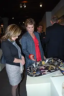 She has also participated in numerous collective exhibitions.[1] These include a 1999 exhibition called Bodegones at Galería Kin with her sister Adriana Lobo.[4] Other collective exhibitions include various early shows in Quintana Roo such as the IV Exposición de Artes Plásticas, the Feria del Arte of the Colegio Americano, at the Centro Cultural de Arte Contemporaneo in various years and the Arte de Nuevo Milenio show at the Florida Museum of Hispanic and Latin American Art in 2000.[5] An important individual showing was Significación at the Museo de Bellas Artes in Toluca in 2010, inaugurated by the then-governor of the state Enrique Peña Nieto. It includes images painted on columns, folding screens and wood, both painted and collage.[2][12]