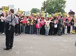 The March for Women's Lives was a protest demonstration held on April 25, 2004 at the National Mall in Washington, D. C. There was approximately 1.3 million participants.[1] The demonstration was led by seven groups; National Organization for Women, American Civil Liberties Union, Black Women’s Health Imperative, Feminist Majority, NARAL Pro Choice America, National Latina Institute for Reproductive Health, and Planned Parenthood Federation of America.[2] The march was intended to address topics such as abortion rights, reproductive health care, women's rights, and others.[2][3] Originally named the March for Freedom, the march was renamed in an effort to expand the message of "pro-choice" to include the right to have children, access to pre and post natal care, as well as sex education that were not always accessible for women of color. [4]