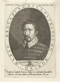 Marco Bragadino or Marco Bragadini (c. 1545 – 26 April 1591) was a Venetian confidence man who claimed to be an alchemist. His name at birth is said to have been Mamugna but he impersonated the son of the dead military officer Marco Antonio Bragadin.[1] He convinced the government of Venice to finance his research into producing gold from base metals.[2]